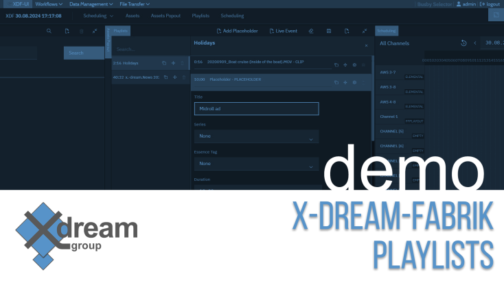 x-dream-Fabrik PLAYOUT is made to monetize your archive content through live programming. This includes individual media assets as well as series, seasons and episodes. PLAYOUT is the combination of linear program scheduling, the actual playout and program monitoring.